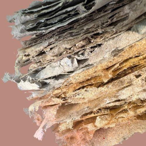 Handmade journals and recycled paper, born from scraps and pulp magic.